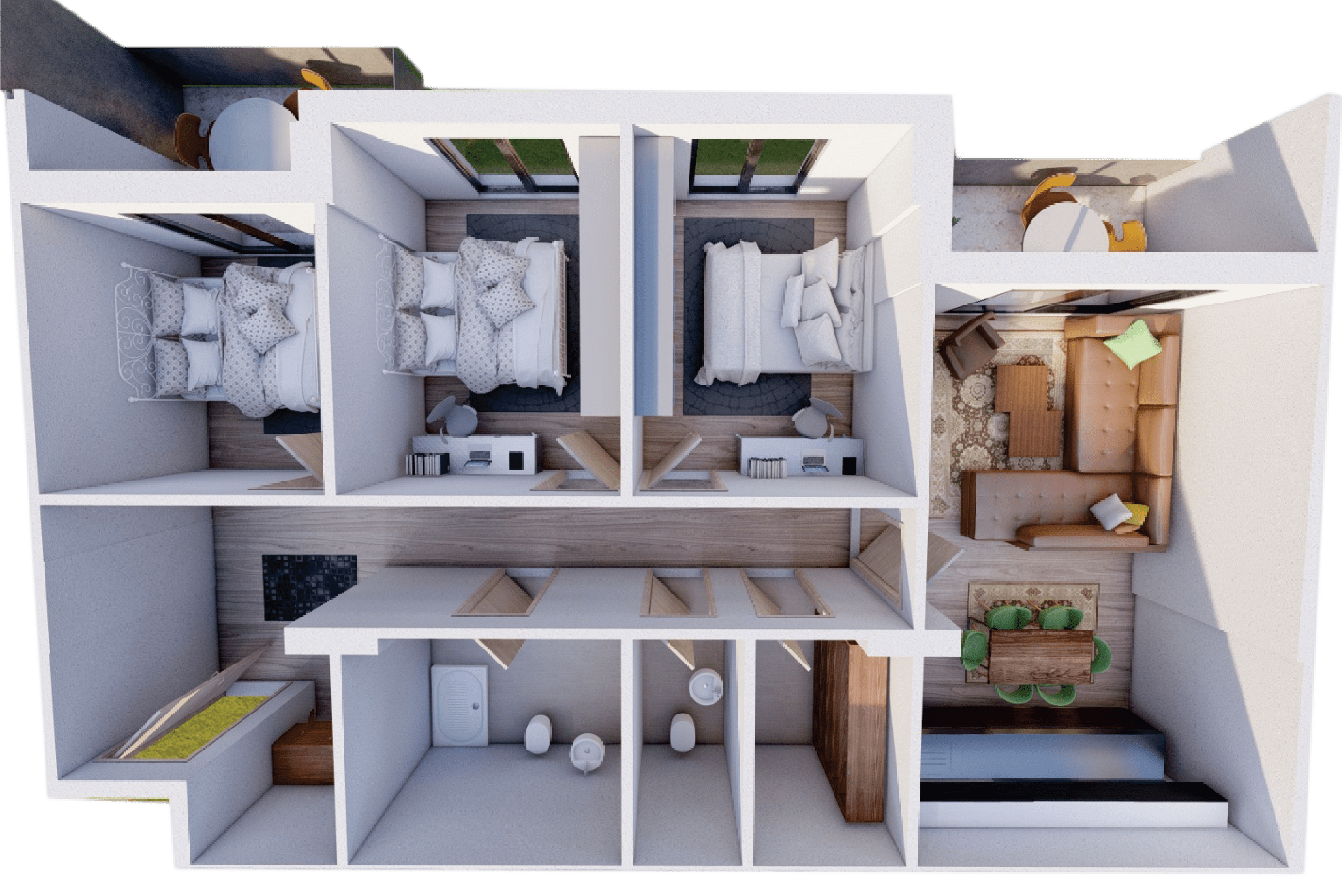 Banesa ofron hapësirë të bollshme dhe planimetri funksionale, ideale për familje që kërkojnë rehati dhe komoditet. Kompleksi karakterizohet nga ndërtim cilësor, ashensor, ambient i rregullt dhe lokacion i favorshëm me qasje të lehtë në shërbime esenciale.